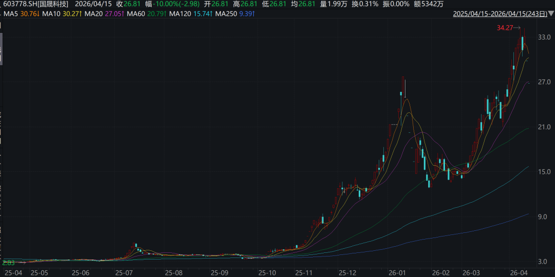 近一年来,国晟世安科技股份有限公司(下称国晟科技,603778.SH)股价表现十分突出。