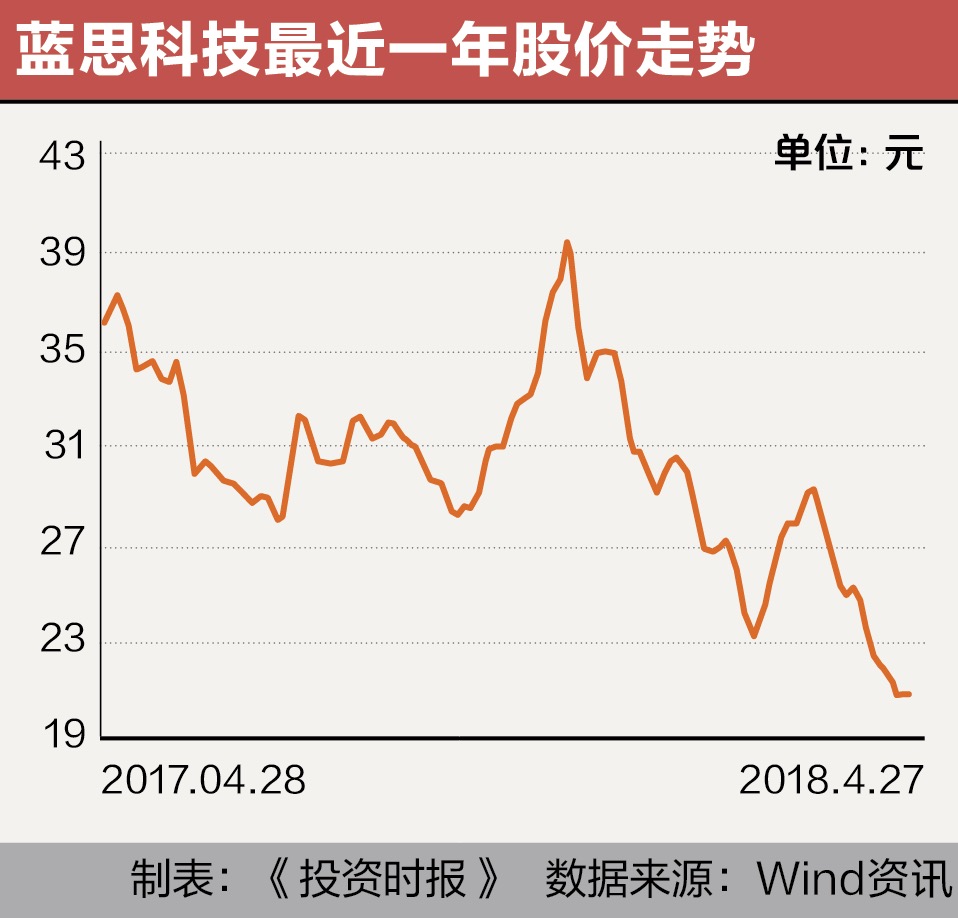 4月23日星期一,蓝思科技以每股21元开盘后迅速击破20元整数关口。下午二时下午2时许,多空双方展开激烈搏弈,并最低下探19.31元,至收盘时报19.62元每股,跌7.19%。一天时间,又有38亿市值不复再见。而至4月最后一个交易日,4月27日,该股以21.11元报收,市值555亿元。