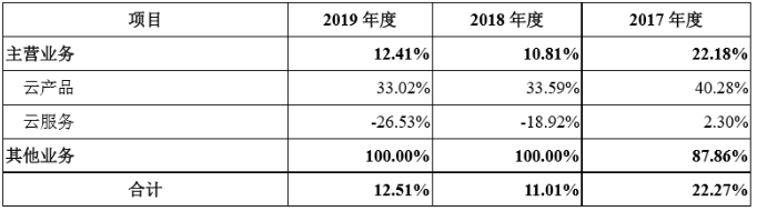 由于毛利率在一定程度上反映企业产品的竞争力,因此若该公司主营业务毛利率处于较低水平,说明产品缺乏竞争优势。而作为该公司主营业务之一的云服务,毛利率持续为负数,这样的情况对其也十分不利。