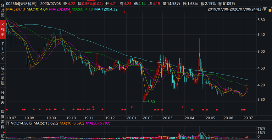 最新披露的一季报显示,2020年第一季度,天沃科技营收同比下降53.89%,净利润由赢转亏,亏损达到1.92亿元。