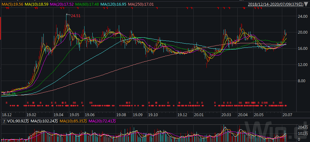 截至2020年7月10日,正邦科技报收于19.05元/股,较前期历史高点下挫22%。