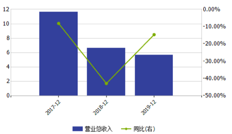 《投资时报》研究员整理了该公司近三年年报发现,2017年—2019年未名医药营业收入下行趋势显著,分别为11.62亿元、6.65亿元和5.68亿元。