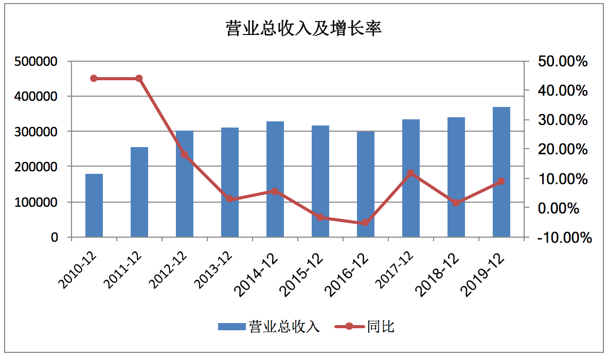 据Wind数据显示,近十年时间,该公司营业收入从2010年的17.81亿元增至2019年的37.04亿元,不过其收入增速呈波动下滑趋势,由2010年的43.91%逐步下滑至2012年的18.07%,又进一步降至2016年的-5.32%,此后又有所反弹,2017年至2019年收入增速分别为11.76%、1.63%、8.93%。
