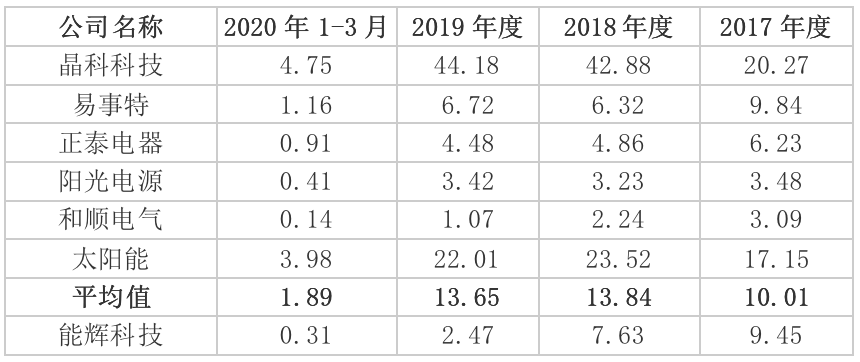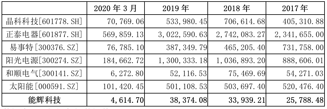 2017年至2019年,能辉科技存货账面价值复合增长率高达189.47%。与此同时,存货周转率下滑显著,报告期内分别为9.45次/年、7.63次/年、2.47次/年和0.31次/年,远低于同行业可比上市公司平均水平。作为重资产企业,存货的不断增加势必会影响资金运转效率,从而限制业务进一步拓展。