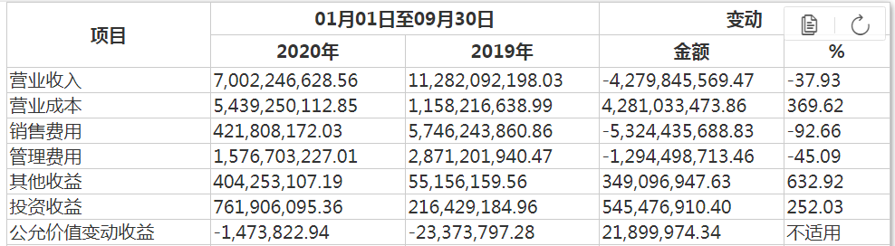 在三季报中,该公司表示,报告期内,合并营业收入、归母净利润及净资产较上年度末下降,均是受新冠肺炎疫情的影响所致。