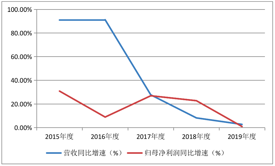 锦江酒店2015年—2019年营收及归母净利润同比增速(单位:%)
