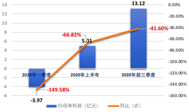 2020年10月28日,广汇汽车发布了2020年第三季度财务报告。数据显示,今年第三季度广汇汽车一改前两个季度低迷态势,业绩有所回温,当季该公司实现营业收入421.46亿元,较上一年同期小幅上升1.64%;实现归母净利润87.11亿元,同比上升10.10%。