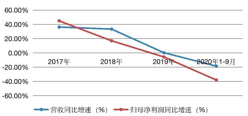 据Wind数据显示,2017年至2019年,格力电器营收已从1500.20亿元增至2005.08亿元,年同比增速依次为36.24%、33.33%和0.24%,呈现逐年下滑态势;归母净利润依次为224.02亿元、262.03亿元和246.97亿元,同比增速由44.87%持续下滑至-5.75%。