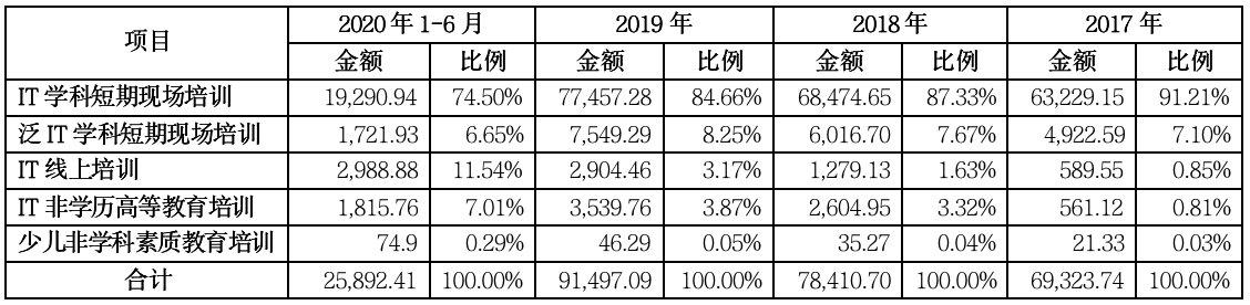 不过2020年1—6月,受新冠肺炎疫情影响,该公司IT线上培训需求上升,6个月内即实现2988.88万元营收,较2019年全年收入还高出2.91%,因此其在线教育营收占比有所提升,毛利亦贡献较大。