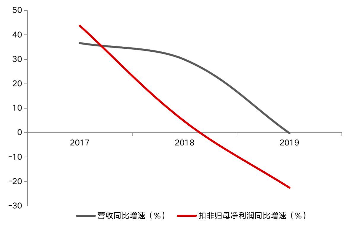 进一步将时间维度拉长来看,《投资时报》研究员注意到,2017年—2019年,其营收及扣非归母净利润同比增速不仅波动幅度过大,且全部呈现出连续下滑的趋势。其中,营收同比增速曾于2017年上冲至最大值36.65%,后于2019年下滑至-0.18%,两者差额近40个百分点;归母净利润同比增速也在相同时间内分别到达最高点43.75%和最低点-22.5%,两者相差超65个百分点,这也从侧面反映了该公司不仅盈利能力波动性较大,投资的业绩安全边际也较低。