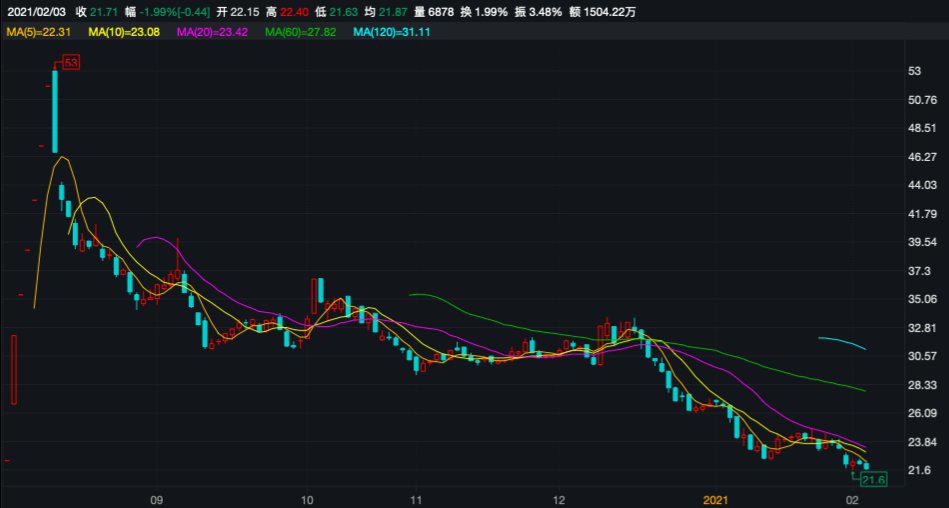 从宝明科技二级市场股价表现来看,面对低迷的市场和公司同比大幅下滑的业绩,不少投资者已经用脚投票。截至2月3日收盘,宝明科技股价仅为21.71元/股,低于2020年8月3日上市首日的开盘价。