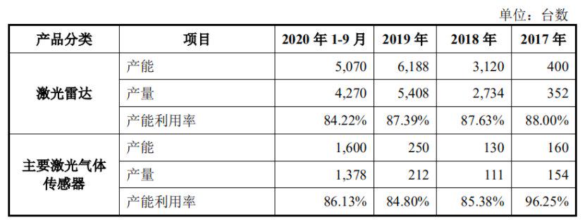 值得注意的是,报告期内,禾赛科技激光雷达产品产能并未达到饱和。招股书显示,激光雷达产能利用率分别为88%、87.63%、87.39%和84.22%,呈波动下滑趋势,随着研发投入的不断增加,禾赛科技产品产能利用率能否达到预期还有待进一步观察。