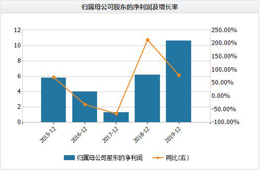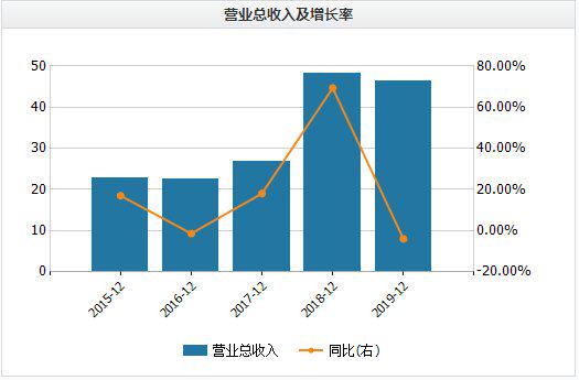 2015年—2019年,海普瑞实现营业收入分别为22.92亿元、22.61亿元、26.70亿元、48.15亿元和46.25亿元,同比增长17.02%、-1.37%、18.10%、69.34%和-3.95%;实现归母净利润为5.80亿元、3.97亿元、1.31亿元、6.16亿元和10.59亿元,同比增长71.39%、-31.54%、-66.91%、213.33%和79.11%。
