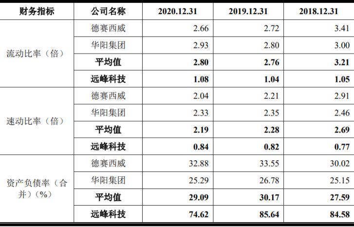 另外,《投资时报》研究员发现,远峰科技的资产负债率远高于同行业可比公司。