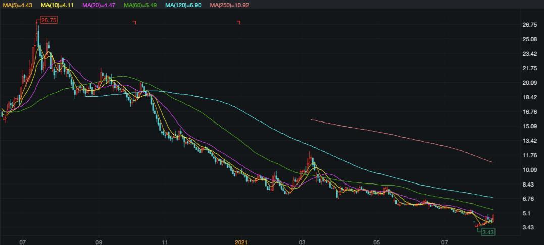 不难发现,对豆神教育来说,即便完成业务转型,该公司也将面临重重难题。截至8月10日,该股收盘于4.90元/股,较一年前的26.75元/股高点下跌63%。