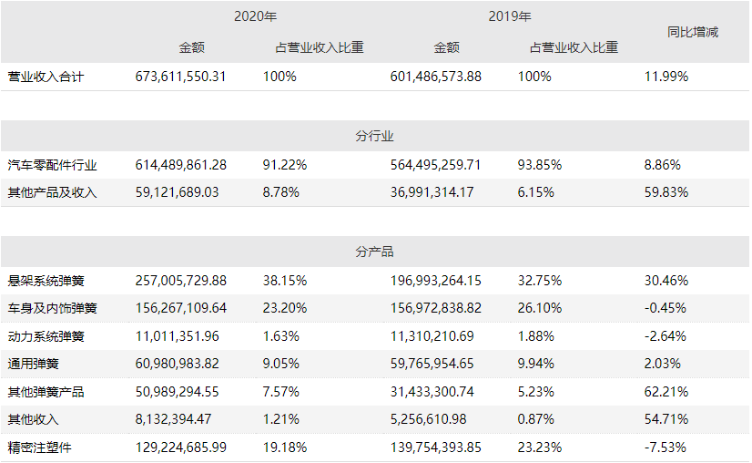据该公司2020年年报披露,该公司拳头产品悬架系统弹簧,尽管去年营收增长了30.46%,但该类产品毛利率仅为6.91%,相较上一年下滑4个百分点。