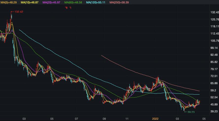 但随着“宅经济”逐步消退,其股价开始震荡下行。今年3月16日,该股价探低至39.23元/股,已接近发行价。截至4月20日收盘,小熊电器报收于48.19元/股,较2020年7月的历史最高价已跌超70%。目前,该公司市值为75.39亿元,较巅峰时刻的258.8亿元缩水183.41亿元。