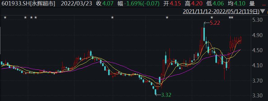 永辉超市近半年股价走势(元)