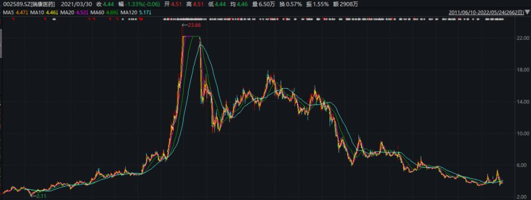 截至5月24日收盘,瑞康医药报收于3.83元/股,较4月7日盘中触达的6.73元/股的年内高点下挫43.09%,当前总市值为57.63亿元。