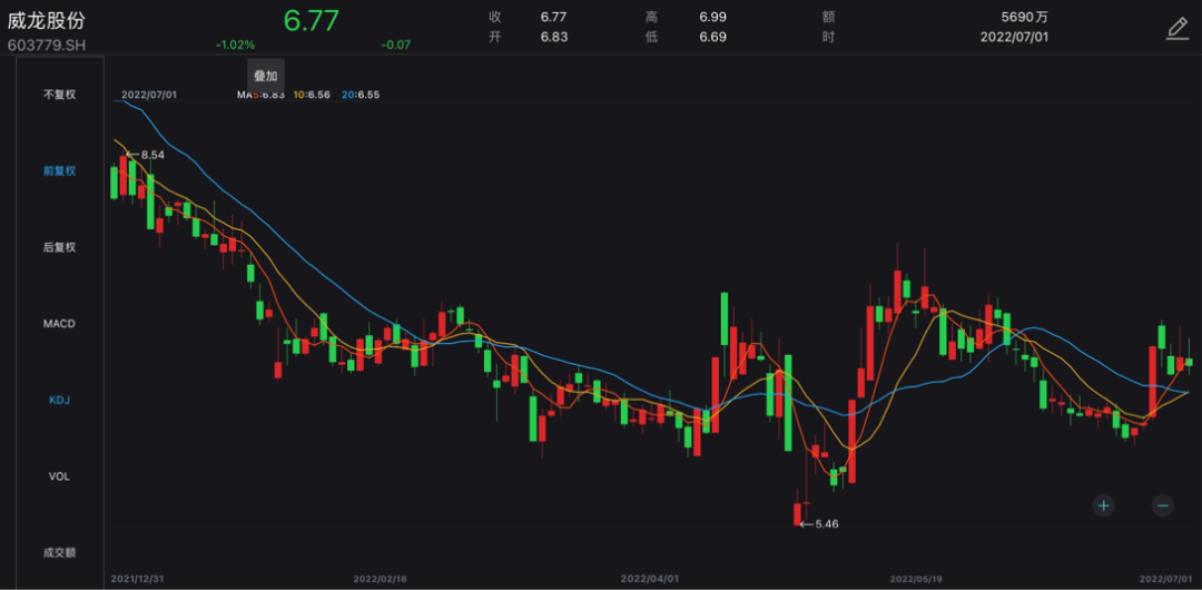 2022年以来威龙股份股价变动趋势(元/股)