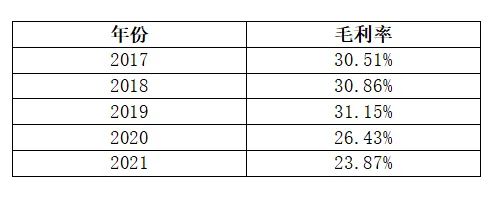 受主营业务毛利率下降影响,苏泊尔2021年全年毛利率为23.87%,在上一年26.43%的基础上继续下滑。数据显示,2017年至2019年,公司毛利率维持在30%左右,分别为30.51%、30.86%和31.15%。