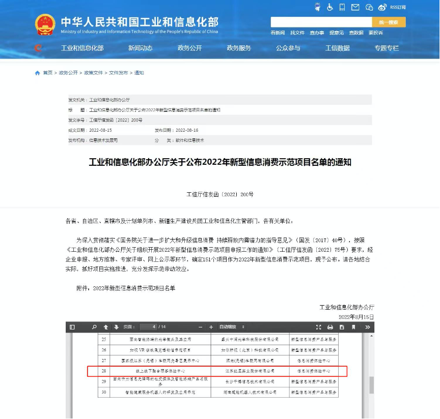 近日,工业和信息化部公布《2022年新型信息消费示范项目名单》,申报方向涉及信息消费体验中心、新型信息消费产品与服务、信息消费+乡村振兴3个领域。其中,江苏红豆实业股份有限公司、雅莹集团股份有限公司、沈阳际华三五四七特种装具有限公司等6个涉纺项目入选。