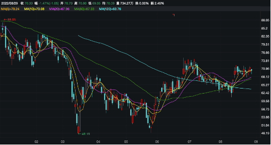 二级市场也给予积极回应,业绩披露当天,该公司股价跳开高开、收盘于70.10港元/股(不复权,下同),较前一交易日上涨4.78%。截至8月29日,股价收盘于70.3港元/股,总市值近1840.73亿港元。