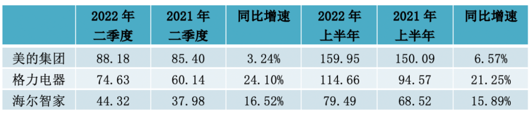 从盈利能力来看,美的集团优势也不突出。2022年上半年,美的集团实现归母净利润159.95亿元,同比增速为6.57%;格力电器为114.66亿元,同比增幅21.25%;海尔智家为79.49亿元,同比增长15.89%。从利润增长来看,美的集团垫底。