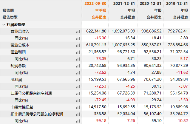 而2022年无疑是该公司备受考验和冲击的一年。该公司三季报显示,前三季度公司营收为62.23亿元,同比下滑16%;归母净利润为1.53亿元,同比大幅下降72.45%;扣非归母净利润为336.58万元,同比下滑99.18%。