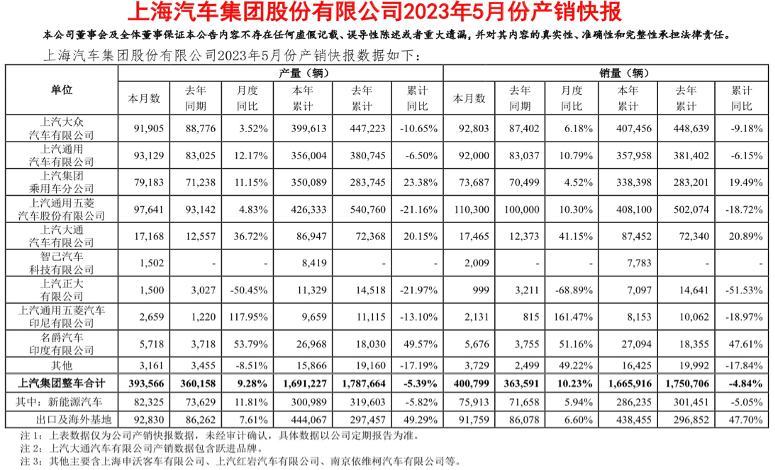但就目前销售数据来看,该公司要完成上述目标压力巨大。截至今年前5个月,上汽集团整车销量166.59万辆,同比下滑4.84%,仅完成年度目标的27.77%。经粗略计算,要完成全年目标,该公司在接下来的7个月时间,月均销量要达到62万辆。