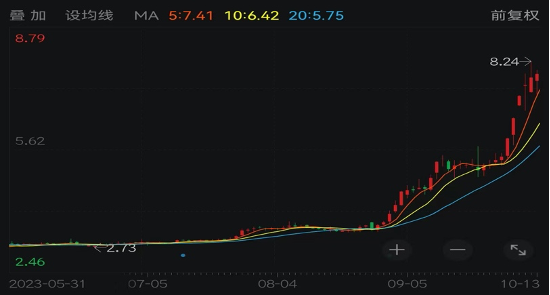 受此消息影响,莲花健康股价在今年9月以来新一轮涨势基础上进一步拉升,于10月12日触及高点8.24元/股。截至10月13日收盘,该公司报收于7.89元/股,相较于今年8月31日3.75元/股的收盘价,涨幅达110.40%。