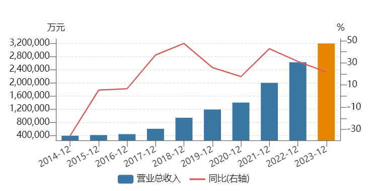 标点财经、投资时间网研究员认为,从营收规模来看,增长20%后的收入水平在白酒上市龙头企业梯队中算不上惊艳,但符合山西汾酒近年来发展趋势。以2023年为例,独占鳌头的贵州茅台实现总营收1506亿元,紧随其后的五粮液营收规模为833亿元,而山西汾酒营收总额仅为319.28亿元,即便再增长20%,距头部的两家企业也有不小差距。