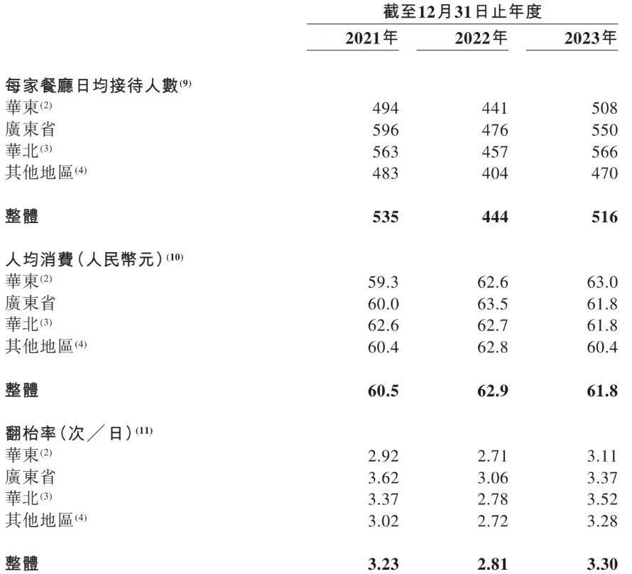 时至2023年,随着国内经济逐步回暖,绿茶集团业绩状况也出现回温。2023年,该公司包括收入、年内利润、客流量、翻台率在内的多项经营指标同比均有所上升。但该公司餐厅的翻台率,相较于受冲击之前水平,依然存在一定距离。