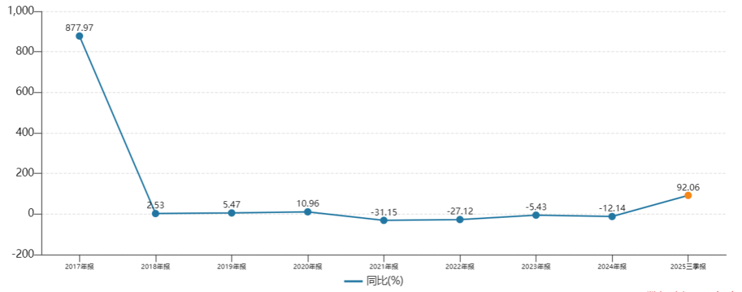 公开信息显示,金龙鱼2020年10月成功登陆创业板。但从上市次年起,公司盈利就转头向下。2021年至2024年,公司归母净利润同比降幅分别为31.15%、27.12%、5.43%和12.14%,直到2025年业绩才出现回升态势。