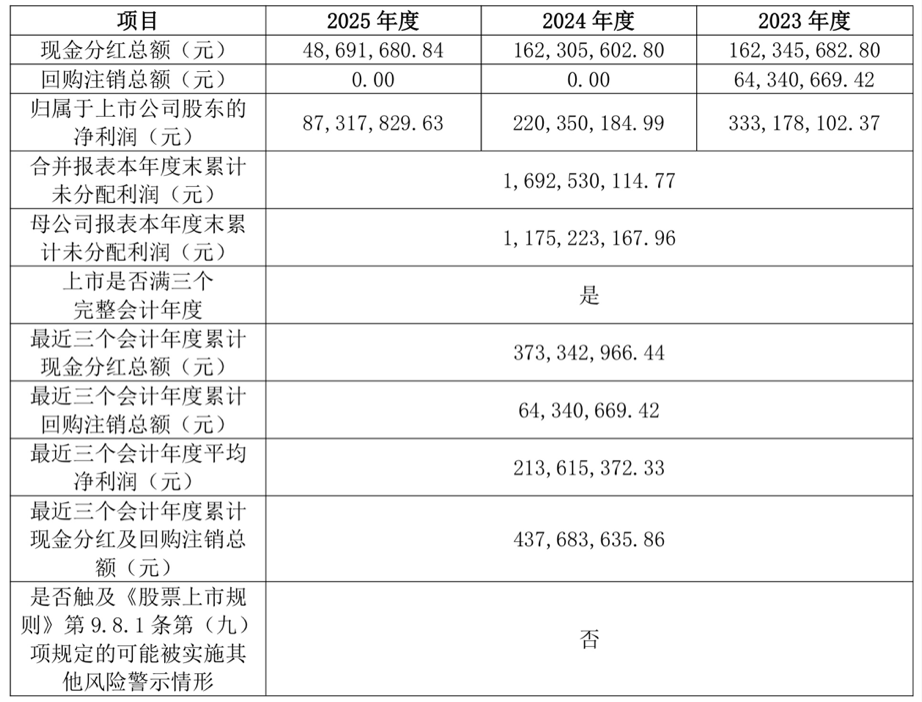 投资时间网、标点财经研究员注意到,年度业绩发布同日,飞亚达还发布了《关于2025年度利润分配的议案》。根据预案,公司拟向全体股东每10股派发现金红利1.20元(含税),送红股0股,不以公积金转增股本,预计现金分红总额约为4869.17万元。2023—2025年度,飞亚达累计现金分红及回购注销金额约为4.38亿元,占2023—2025年度年均净利润的204.89%。