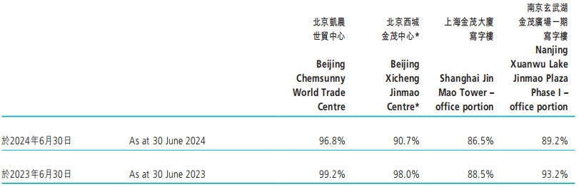 中国金茂持有主要写字楼出租率