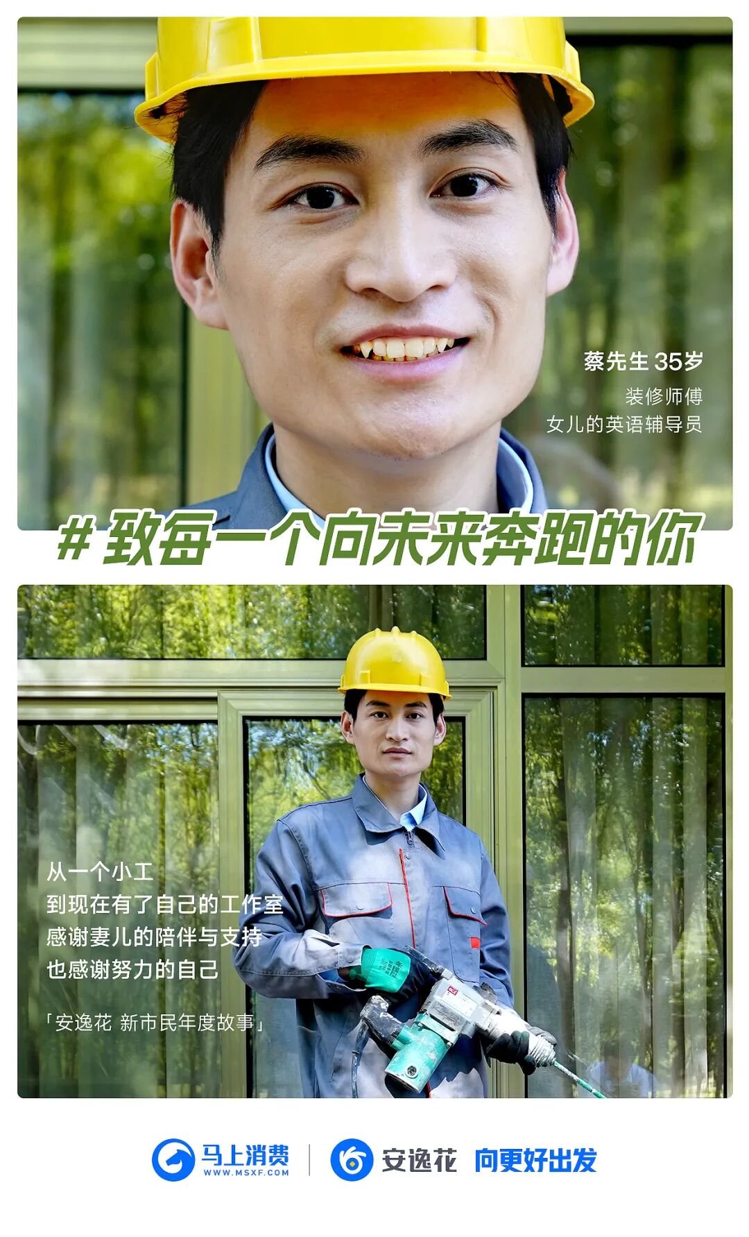 致每一个向未来奔跑的你!在安逸花的镜头之下,有人从普通的装修工人,到成立承接跨国业务的工作室,有人从大厂职员到时间自由的空间整理师,有人从幼儿园老师到兼顾教育和兼职插画师的斜杠青年,有人从餐厅厨师到美食KOL……一个个生动的新市民故事,不仅是当下普通人努力生活的缩影,也是更多人向前生活的力量。
