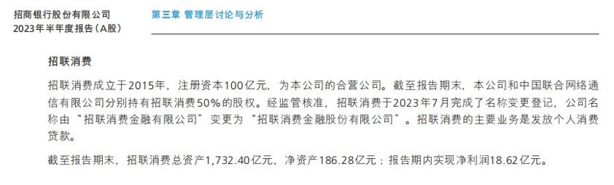招联金融两大股东招商银行和中国联通半年报都披露了招联金融今年上半年部分财务数据。