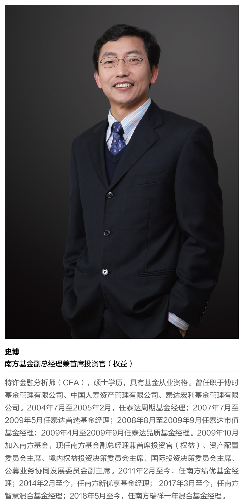 从业二十年来,史博经历了两次市场的暴涨暴跌。第一次是2008年的金融危机,当时恰是史博进入基金行业第十年;第二次是2015年。这一次让史博至今印象深刻,他坦言,“创造绝对收益”的思路、为“客户创造价值”的理念,经此役之后愈发在南方基金权益投资团队的心里根深蒂固。
