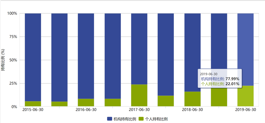 其四,机构占比。相比个人投资者而言,机构于基金布局方面通常眼光更为老辣,更先知先觉。一个值得注意的现象是,《投资时报》记者查询Wind数据了解到,过去五年来,工银深证红利ETF的机构占比长期超过80%,如2015年、2016年、2017年、2018年末的机构持有比例分别为94.96%、91.88%、88.65%、79.99%。从目前可查的最新数据看,截至2019年6月30日,机构占比依然高达77.99%。