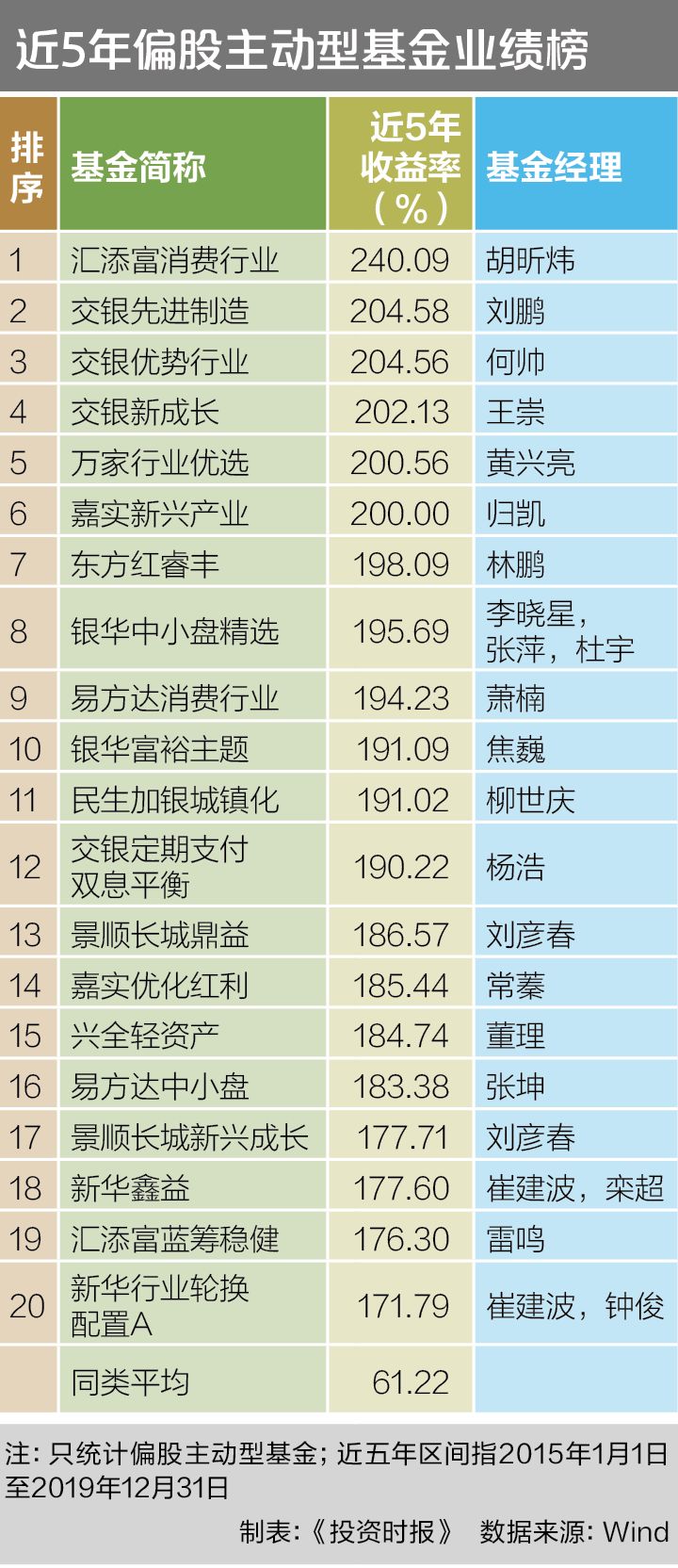 截至2019年底,这只由明星基金经理胡昕炜管理的消费主题基金成立以来的累计回报已经突破370%,年化收益率高达26.27%。尤为值得一提的是,汇添富消费行业过去5年净值增长率达240.09%,不仅在消费行业偏股型基金中排名第1,更是在全市场所有偏股主动型基金中高居榜首。