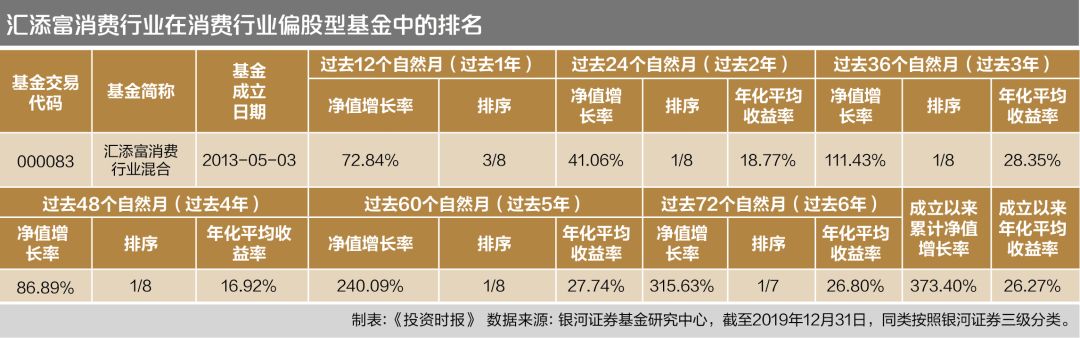 截至2019年底,汇添富消费行业混合成立以来的累计回报已经突破370%,年化收益率高达26.27%