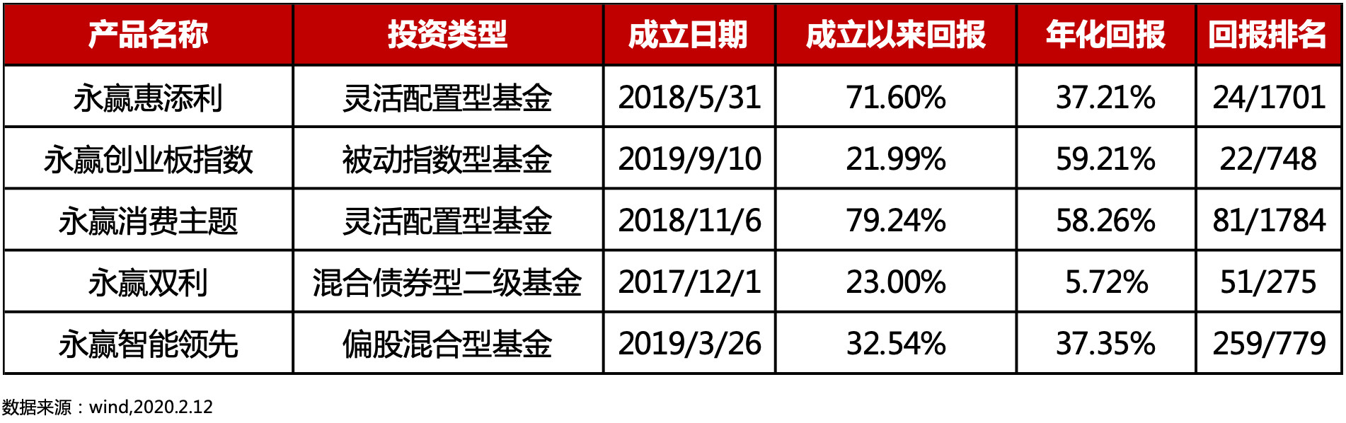在强大渠道的支持下,最终还需要有过硬的产品才能得到投资者真正的信任,永赢基金过往多只产品业绩超过同类基金。