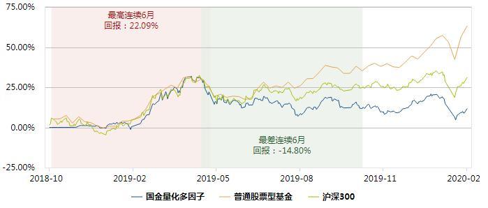 国金量化多因子的份额净值增长率与业绩比较基准收益率相比亦处于劣势。根据基金季报披露,2019年四个季度中,该基金份额净值增长率仅在第二季度跑赢业绩比较基准收益率。