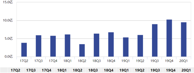 Wind数据显示,截至今年一季度末,该公司的管理规模不足10亿元,仅为9.57亿元。此外,从已披露数据来看,自2017年一季度以来,该公司仅在2019年四季度管理规模突破10亿元,且基金公司排名持续在百名开外。