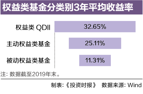 与A股权益类基金相比,过去3年,权益类QDII的整体成绩更为亮丽,给投资者带来了32.65%的平均收益。133只能获取3年期业绩的权益类QDII中,仅5只净值出现下跌,超过96%的权益类QDII在过去3年获得正收益。
