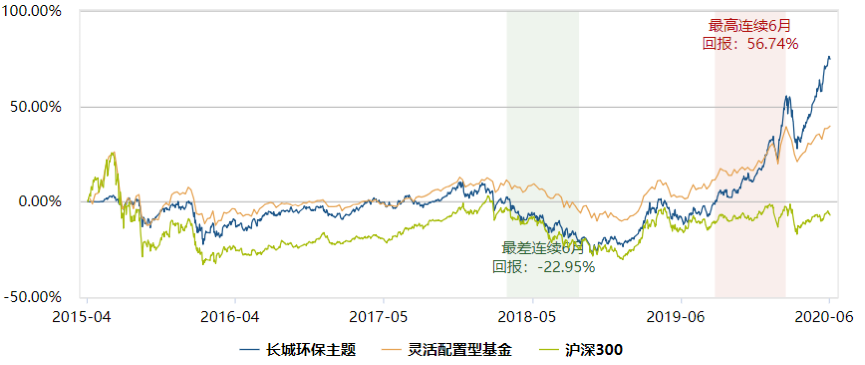 看上去这只基金有些“生不逢时”,然而,成立以来长城环保主题的业绩表现并不逊色。Wind数据显示,截至今年6月15日,该基金近六个月的净值涨幅达50.3%,在1901只灵活配置型基金中高居第五;近一年、近两年的净值涨幅均位列同类基金前20位;近三年、近五年的业绩排名分别为98/1391、34/462,始终处在前10%阵营。成立以来,长城环保主题累计回报率为74.57%,而同期沪深300指数下跌7.16%,灵活配置型基金平均收益率为39.52%。凭借优异的业绩表现,该基金被海通证券、招商证券双双评为三年期五星基金评级。