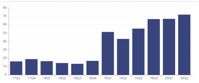 不过,经营数据增长喜人的背后,是货币型基金对规模的贡献。Wind数据显示,截至今年二季度末,该公司管理规模为71.95亿元,其中货币型基金规模为52.72亿元,占总规模比例的73.27%。
