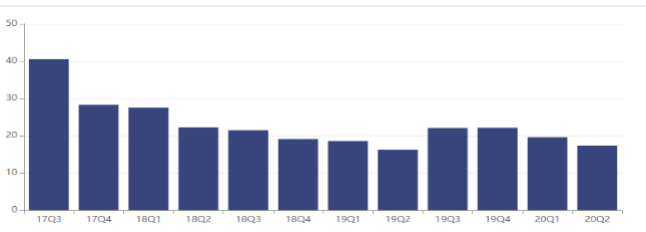 同时,江信基金的管理规模亦在滑坡。Wind数据显示,从去年初到今年二季度末,该基金管理规模从19.11亿元降至17.36亿元,下降幅度为9.16%。而同期成立的兴业基金,管理规模已有2048亿元。
