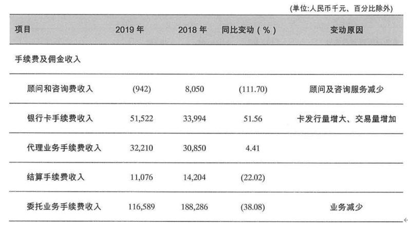该行当年实现手续费及佣金净收入1.1亿元,同比大降56.72%,在手续费及佣金支出同比大增157.56%的同时,收入同比下降18.63%。最终富滇银行非利息净收入占营业收入的比重也进一步下降。其中需要注意的是顾问咨询费,自2017年起就持续下降,2019年同比大幅下降111.7%,顾问和咨询费为-94.2万元。